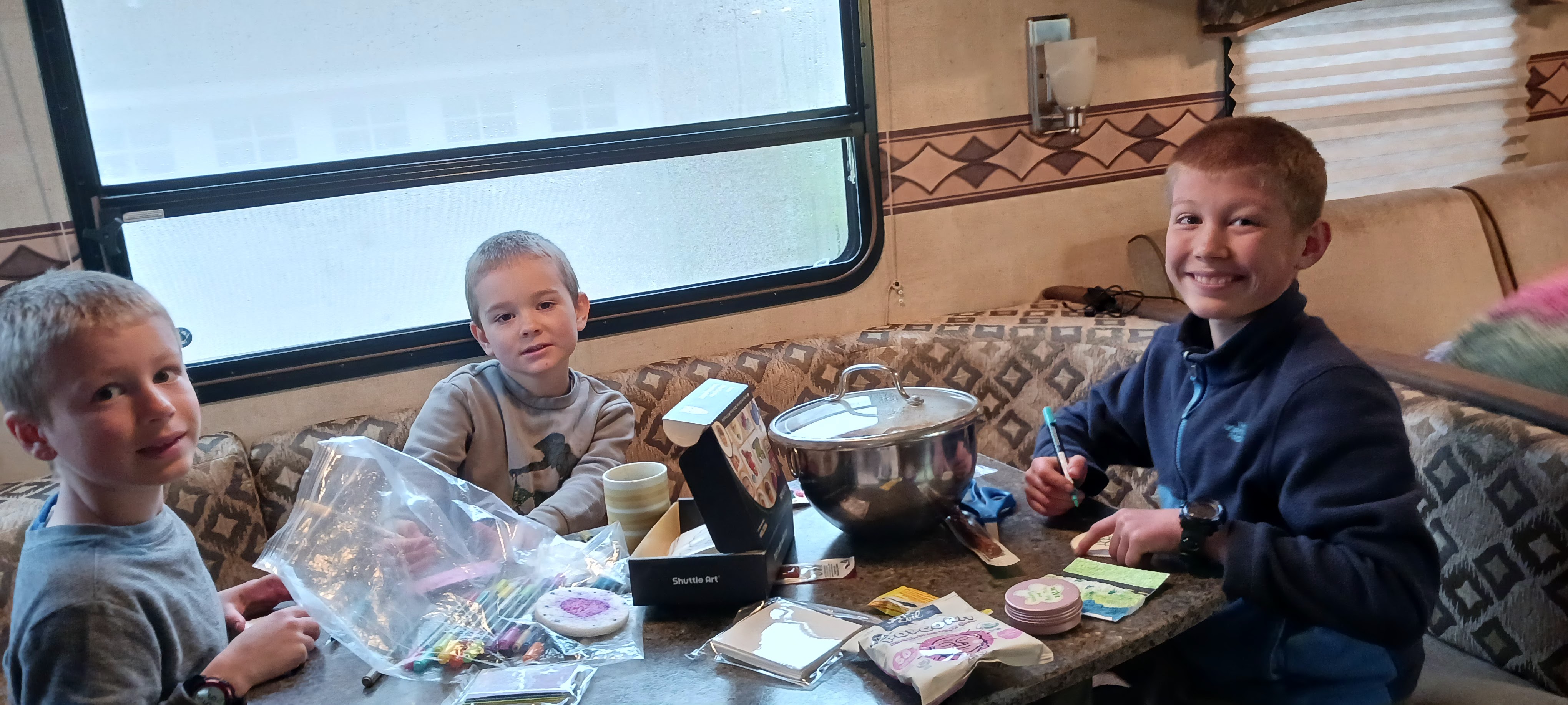 Staying at Village Creek State Park was great! There were working showers and nice hiking trails. The picture on the top is of the boys creating sponge art. We only stayed here one night, but mom says its a “10 out of 10 campground”!