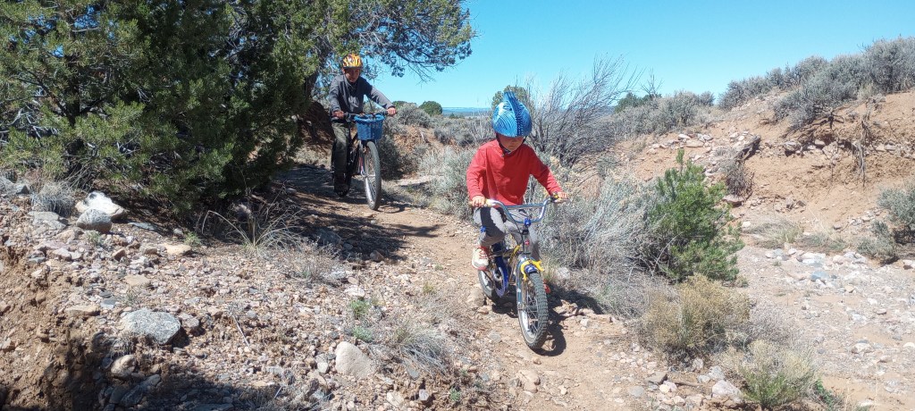 As we checked out of our restaurant site our final day in New Mexico, Matt and the kids did some mountain biking while Erin sat in the van with her oozing and itchy self.