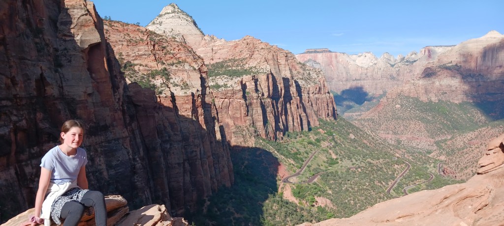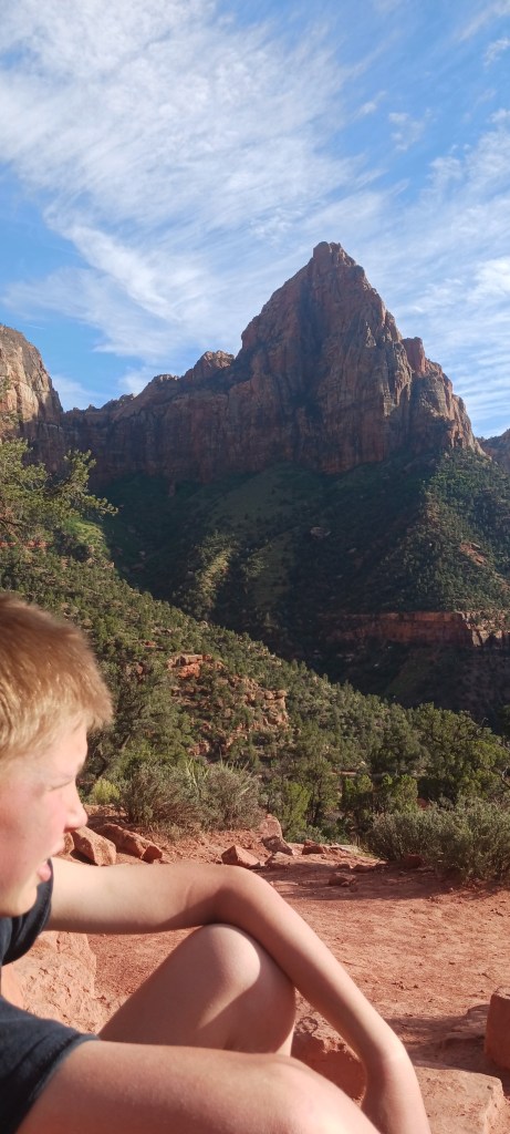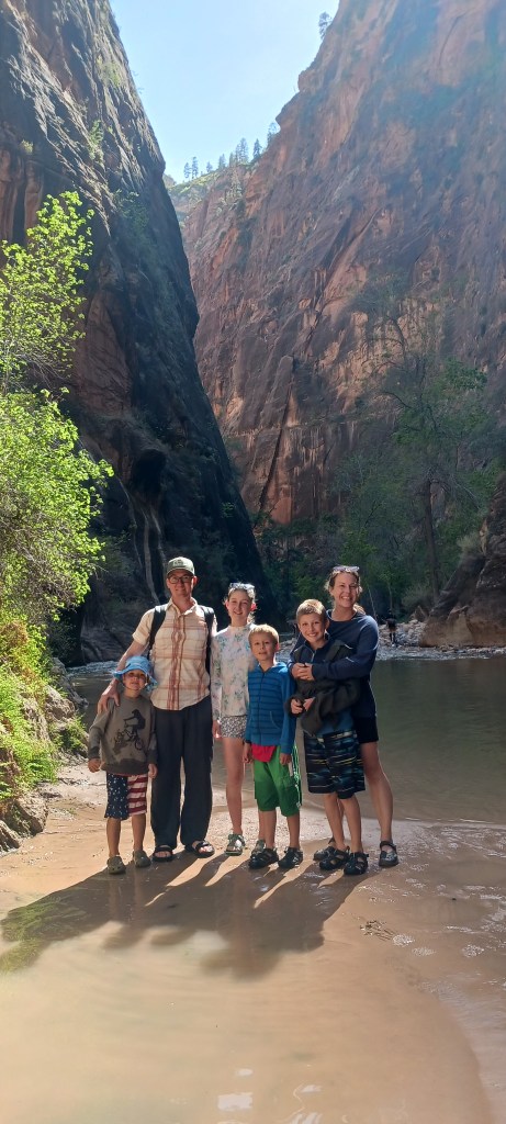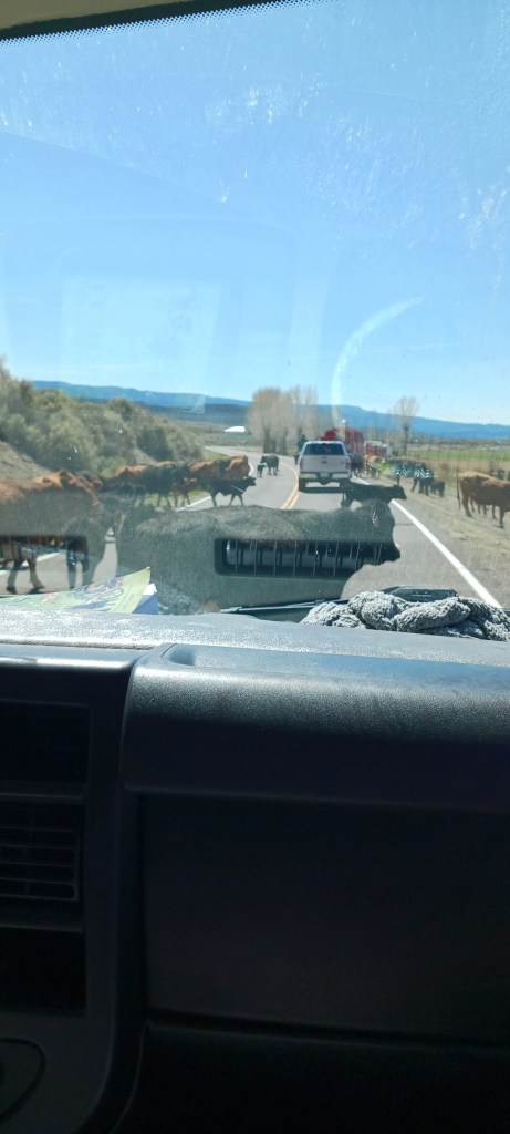 On the way to Zion we ran into a most unusual and hilarious sight: a herd of cows being nudged down the road by some cowboys and horses! Another “animal mishap” we ran into was a squirrel sneaking into our van and eating up our snacks. That silly squirrel also chewed on some wires and was stuck in the car for 2 days because we couldn’t get it out. What an adventure! We were thankful the car still started!